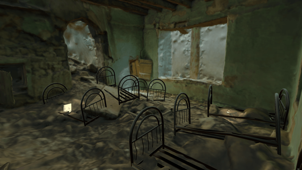 I also took creative control over the texturing of the interior of the past building. I went through many trial and error sequences finding what would be the best material for the walls, ceiling, and floors. I took into account the time period, the lighting, and even the economic status of the fictional building in order to settle on what looked best.